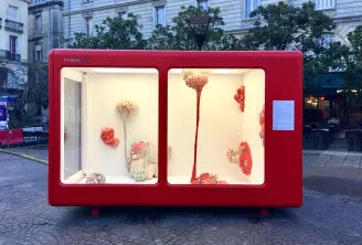 After a few years spent teaching art, the Bordeauxbred Nadia Russell Kissoon decided to move into curating exhibitions, but of a new kind. In fact, she never wanted to work in a traditional gallery, her dream was to bring art directly to the people. To that end, in 2007, she created her first Tinbox: a large red wooden box, 2m x 2m, with a window panel that allowed her to exhibit work by contemporary artists in the public space