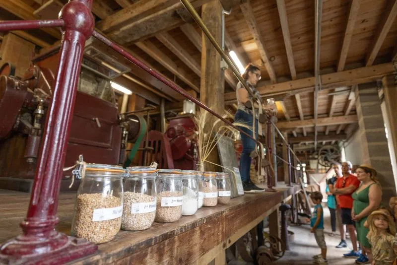 It was in the 1930s that the old mill was transformed into a more modern cylinder mill. During the guided tour, you will discover the incredible ingenuity of the system where the grain of wheat travels, to be sorted, washed, brushed, crushed, sifted and finally transformed into flour.
