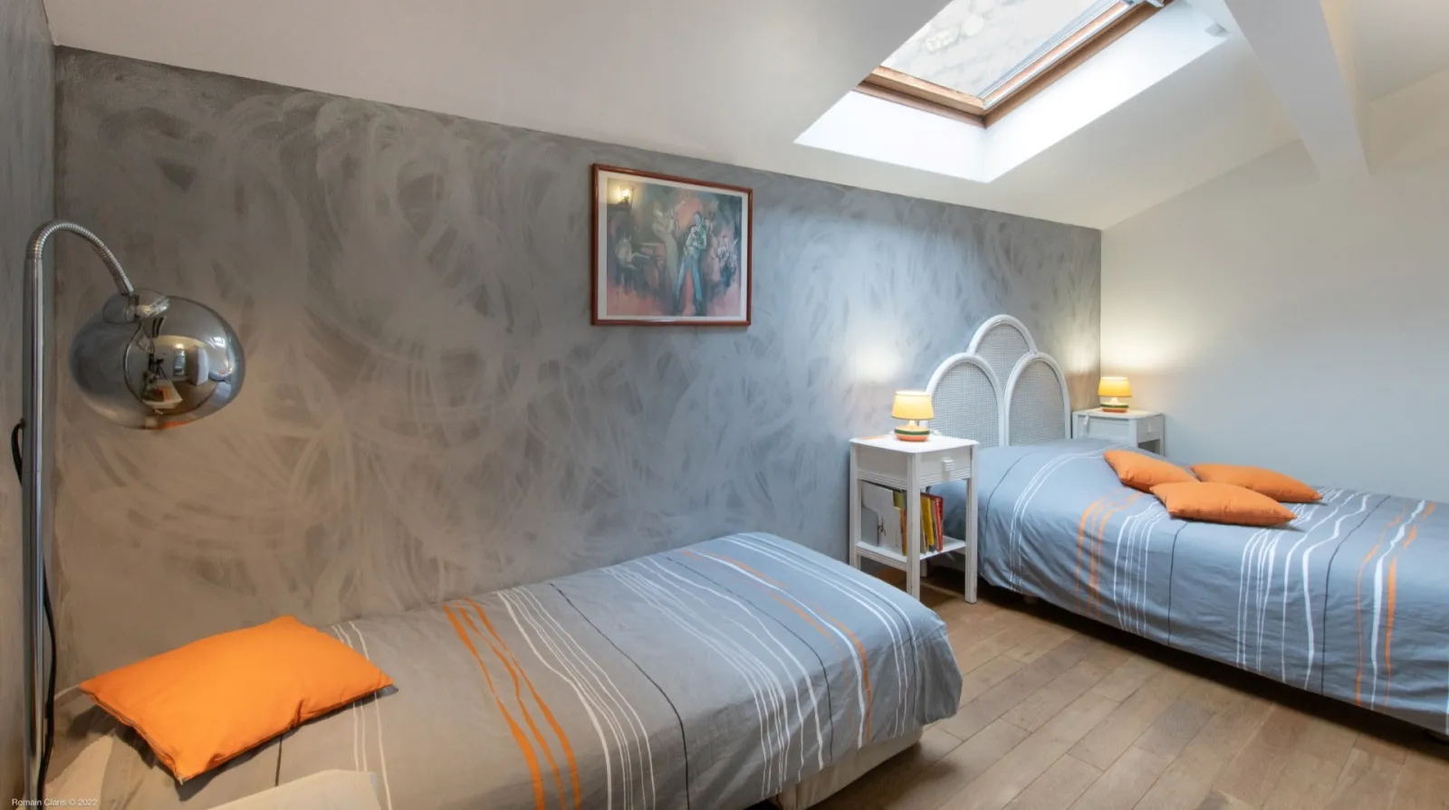 On the first floor, you will have a 15 m² room with a double bed (140 x 190 cm) and, on the same landing, a private bathroom and toilet (Marceline room).