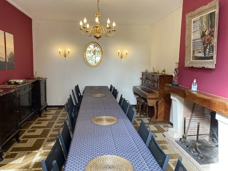The ground floor consists of a large entrance, a living room with 2 sofas, a piano, a TV; a dining room, a fully equipped kitchen (fridge, dishwasher, washing machine, electric stove, coffee maker, electric kettle, microwave), 1 toilet, a shower room and a pantry.