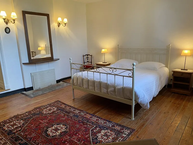 On the first floor a large landing leads to: a big parental room with a bed of 1,6m x 2m; a bathroom (shower, bath and washbasin), a separate toilet; a twin bedroom with 2 beds 1m x 2m and finally the 2nd large parental bedroom with ensuite ( shower, washbasin and toilet)