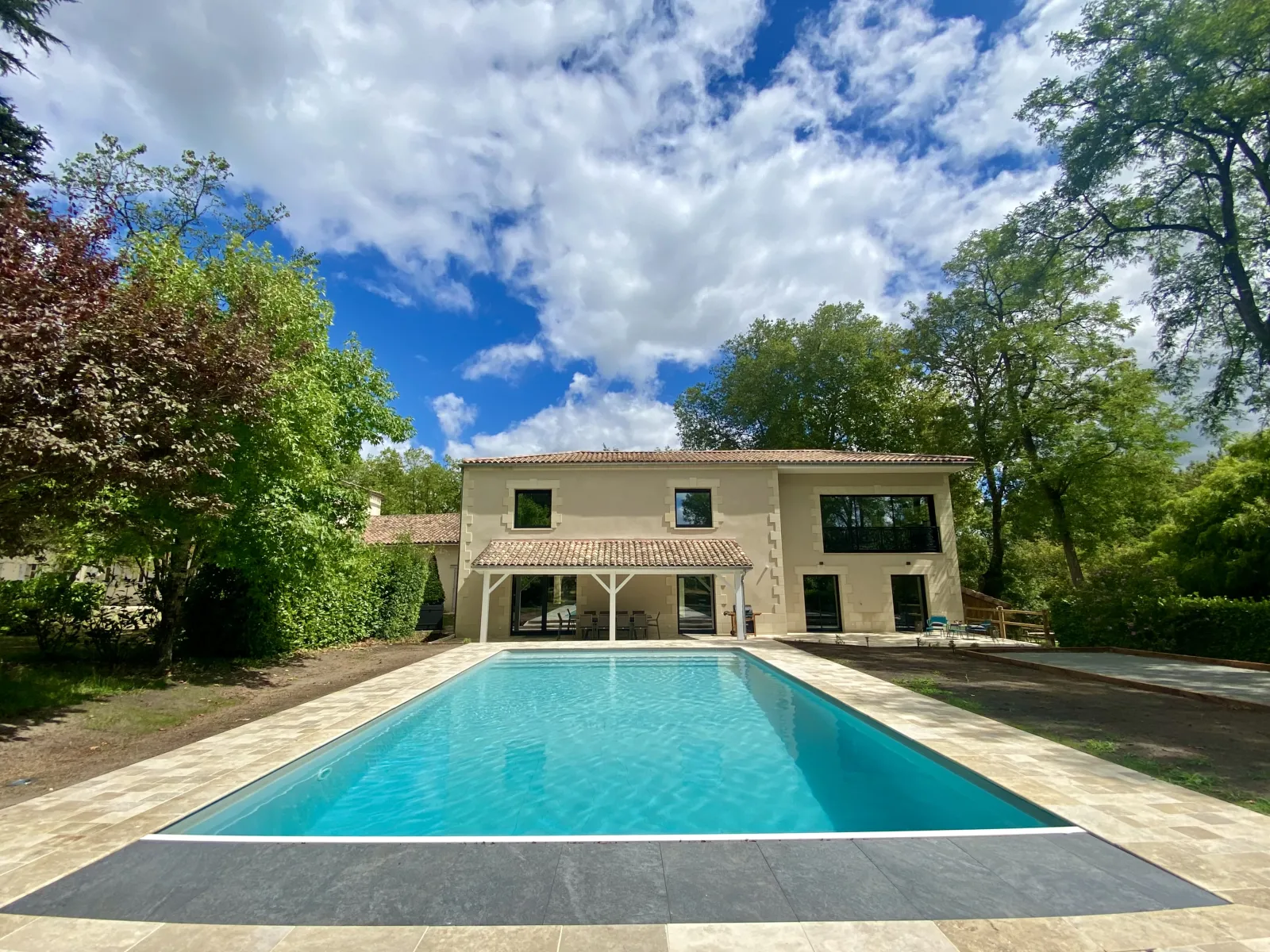 Our brand new gîte with 5 beautiful and comfortable rooms with individual air-conditioning, with a living room, a dining room adjoining the kitchen and surrounded by greenery, in the peace and quiet but not far from Libourne (20mn), Saint Emilion (30mn) and Bordeaux (40mn) is fully equipped. It will allow you to spend your vacations in total independence, while enjoying the swimming pool and the flowered garden. You will also have access to the tasting of our wines several times awarded and which will accompany perfectly your games of petanque and your barbecues!