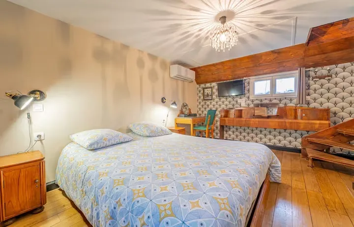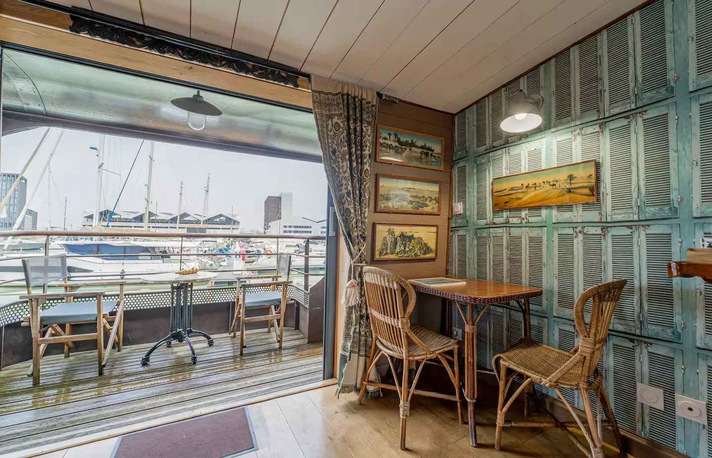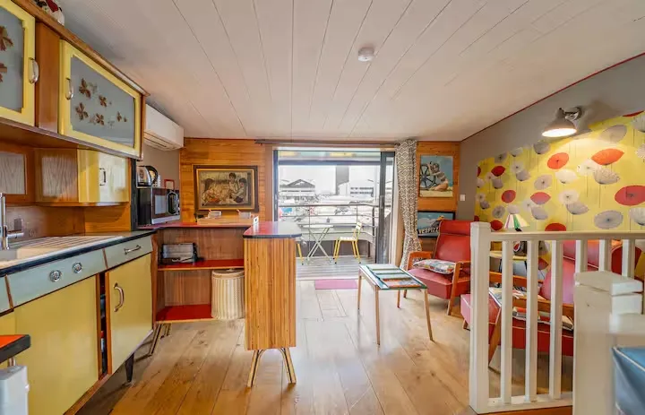 Embark on a unique experience aboard the Petite Annick, a charming hotel barge moored in Bordeaux's marina.