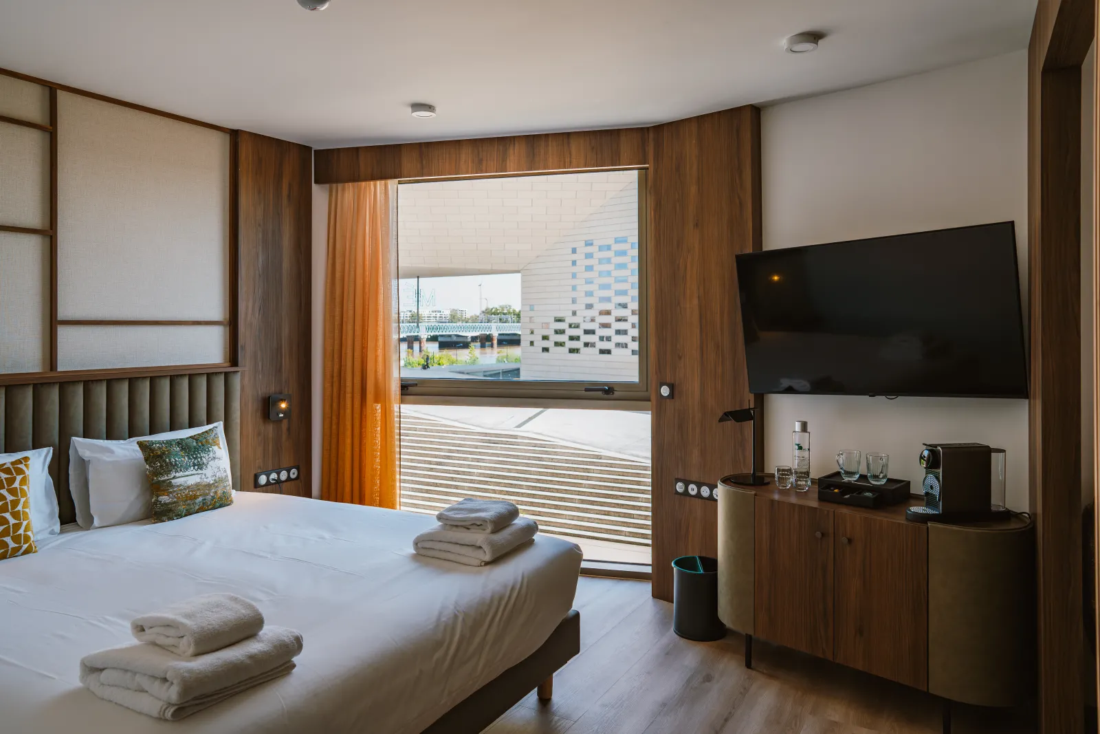 Nestled on the quays of Paludate, Hôtel Le 56 embodies Bordeaux?s contemporary elegance. Our 4-star establishment welcomes you to a showcase of refinement, where every detail has been designed to enhance your stay. From the Rivamour bistronomic restaurant to the panoramic rooftop, not forgetting our wellness and work areas, every moment is an invitation to discovery. Our attentive, discreet team is dedicated to personalizing every aspect of your stay.