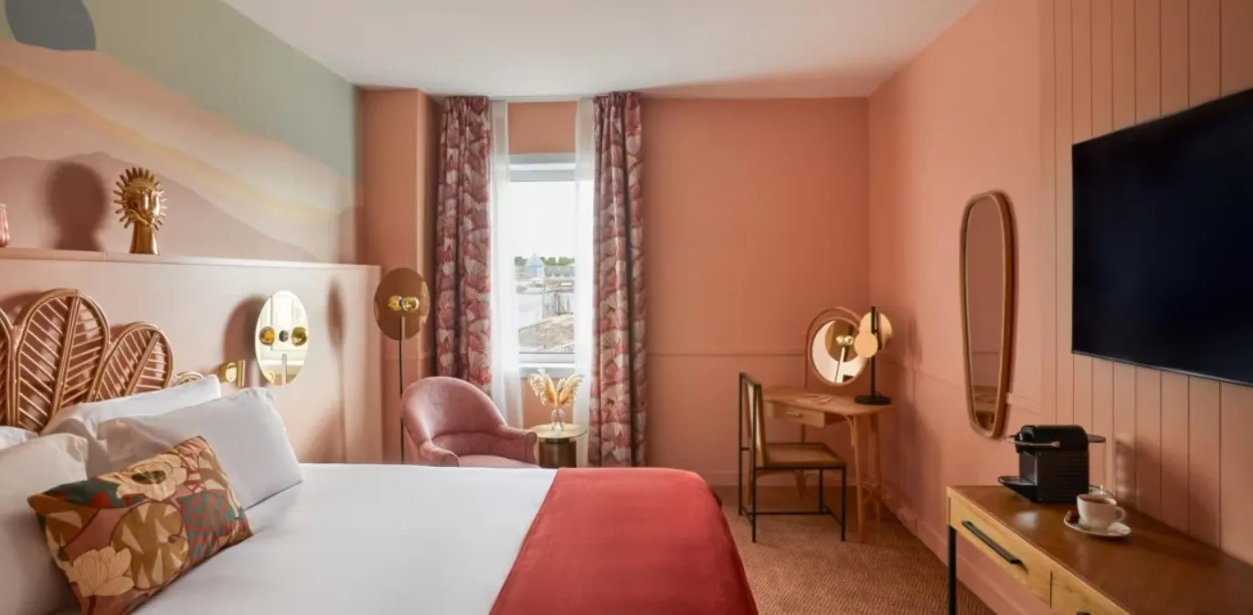 Its restaurant named “Tchanqué”, located high up on the 7th floor, offers breathtaking views over the Garonne and the rooftops of Bordeaux. Inspired by the gentle way of life in the Arcachon basin, the restaurant invites you to sample the art of living and the gastronomy of the west coast, from breakfast to the last drink.