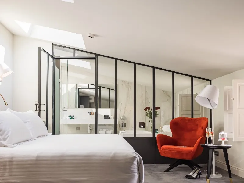 Villas Foch Bordeaux has 20 rooms including 8 suites designed to give you the rest and relaxation you're looking for. The French bedding is worthy of the greatest luxury hotels. The way it has been restored, a veritable work of art, magnifies the old and immerses you in the elegance of 19th century bourgeois architecture. You'll feel as if you're in a cocoon with a cosy and refined atmosphere.