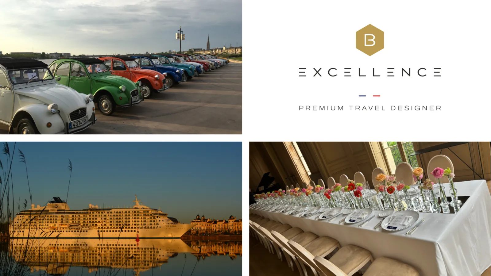 An incoming agency based in Bordeaux for over 15 years, B Excellence is a recognized partner of the world's leading operators specializing in business tourism, excursion programs for cruise passengers and tailor-made private luxury trips. Renowned for its professionalism,
