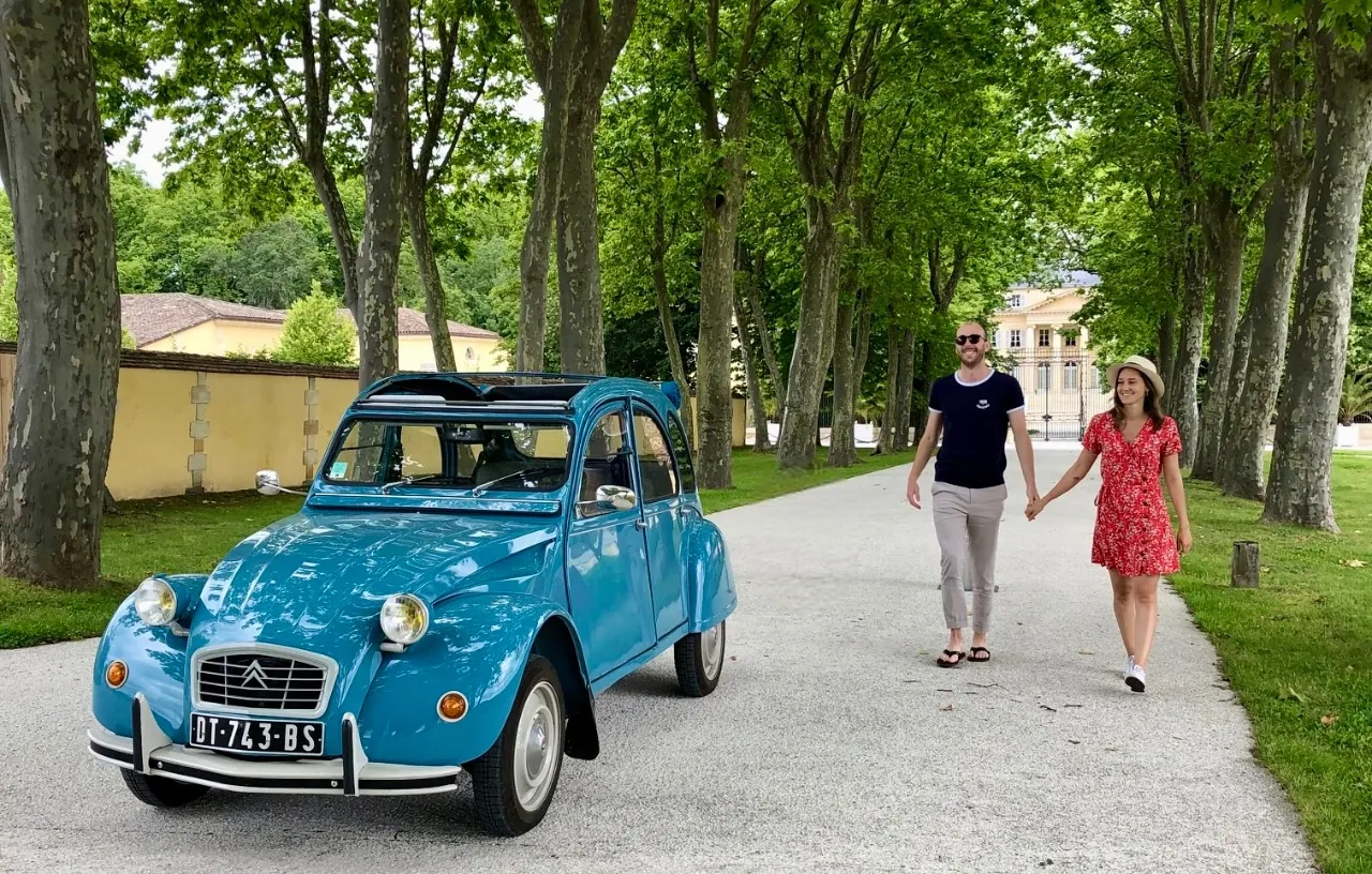 We invite you to experience a timeless moment as you discover the treasures of the Bordeaux vineyard through our private tours. On board our vintage, convertible Citroën 2CV, you’ll drive through stunning landscapes, between vineyards and Châteaux. Learn the secrets of winemaking from our prestigious appellations and taste exceptional wines.