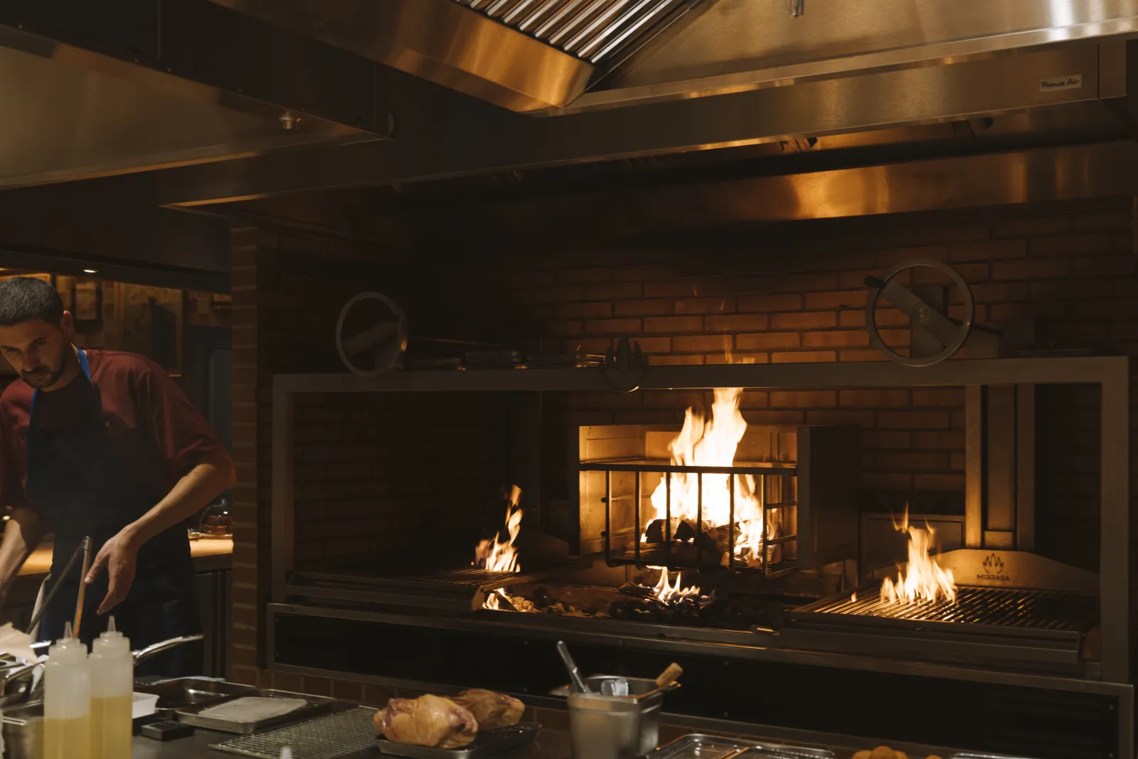 In a setting inspired by the great wine estates, everything moves to the rhythm ofa cuisine as generous as it is alive. At its center: a wood-burning hearth encircled by an open kitchen, imagined as the beating heart of the house. Meat, fish, vegetables — all pass through its flames,, bronzed by fire.