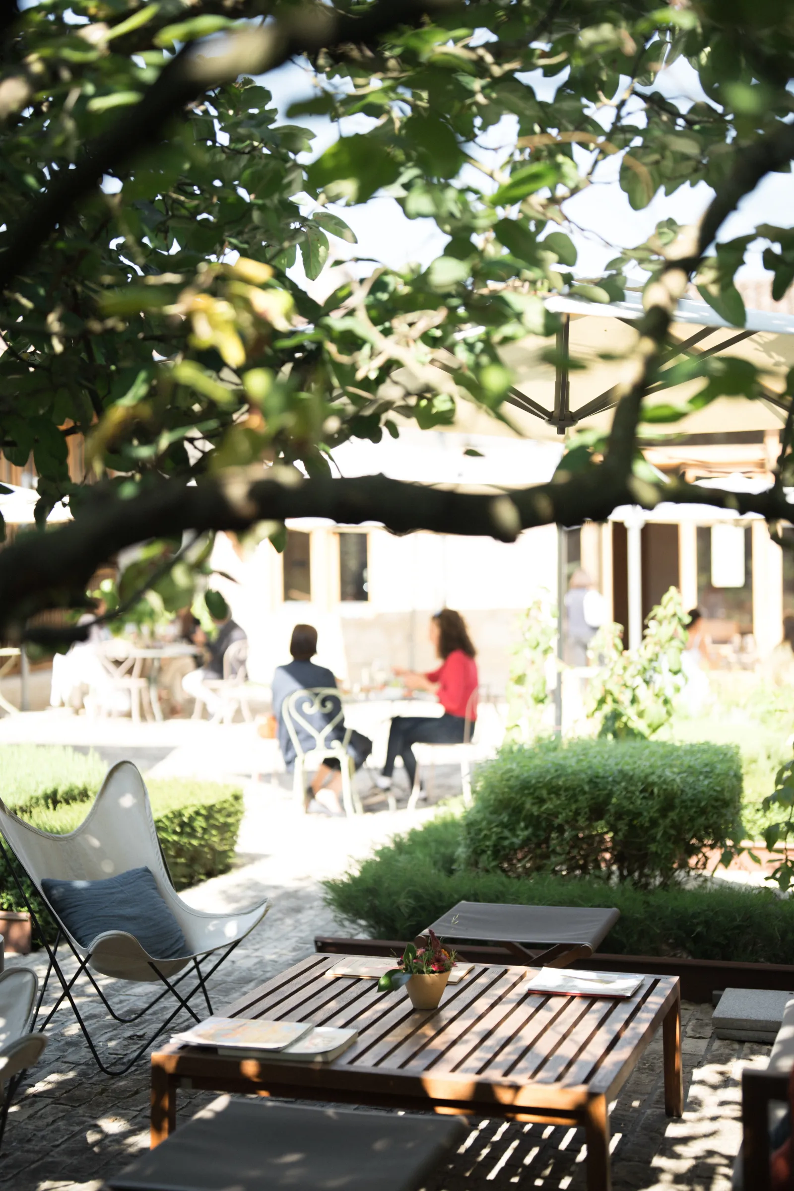 La Table de Nathalie is an oasis of calm nestled at the heart of the estate. The ideal place to enjoy a garden cuisine or simply enjoy a glass of wine, tea or a fruit juice. The herbs, the flowers and most of the delicious vegetables served in the restaurant come from the vegetable garden and are freshly picked every morning; produces used for our menus are carefully sourced from local suppliers with an environmental approach and who are passionate about their work.