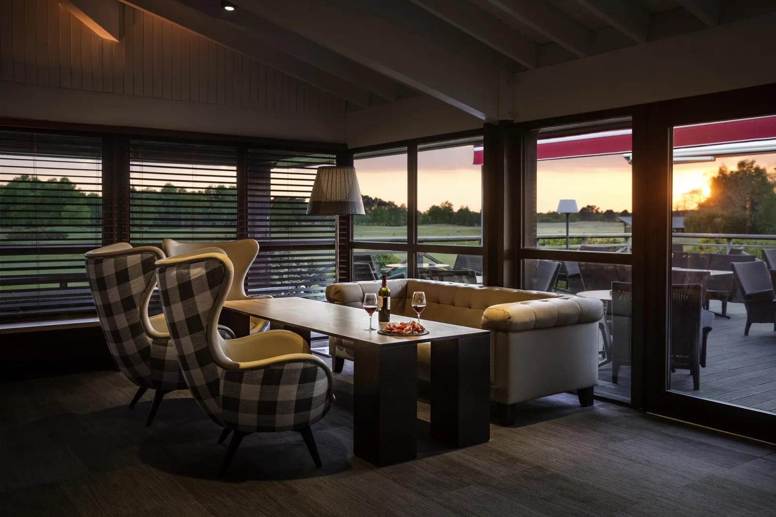 As evening arrives at the golf du Médoc, it is time to enjoy some fine local cuisine and a superb selection of local First Growths from the restaurant cellars. Comfortably positioned behind the large bay windows, or indeed on the restaurant terrace to take advantage of the warm evening, diners appreciate magnificent views of the course green. Against a stylish contemporary backdrop, the menu is regional, modern, and refined: foie gras, duck breast, oysters, scallops, and some delicious cuts of meat. Themed dinners and tastings are a wonderful way to discover the authentic, gourmet cuisine of the South West. A delicious experience for golfers, visitors and hotel guests alike.