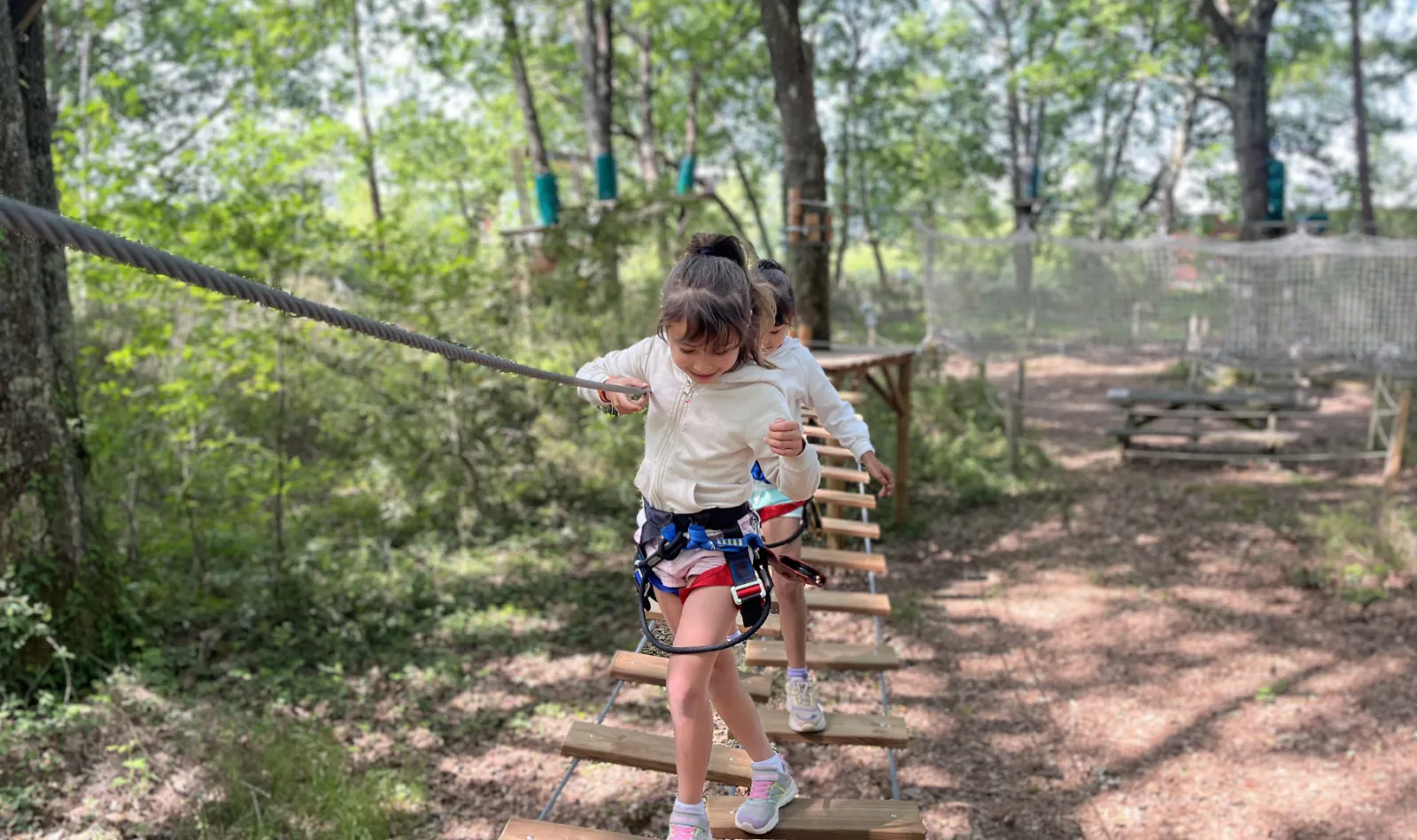 Climb through the trees and test your agility on no fewer than 11 adventure courses, including 2 accessible from the age of 5. Suspended bridges, aerial bikes, wakeboards, cable cabins, and the famous Tarzan jump guarantee thrilling sensations! Each course features a variety of challenges suitable for both young explorers and seasoned adventurers.