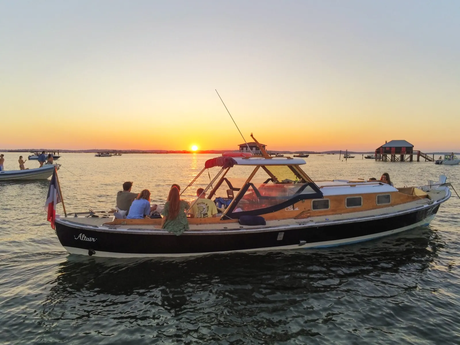 • A true meal prepared by a chef onboard the Pinasse! A 5-hour outing, generally in the evening to enjoy the sunset.