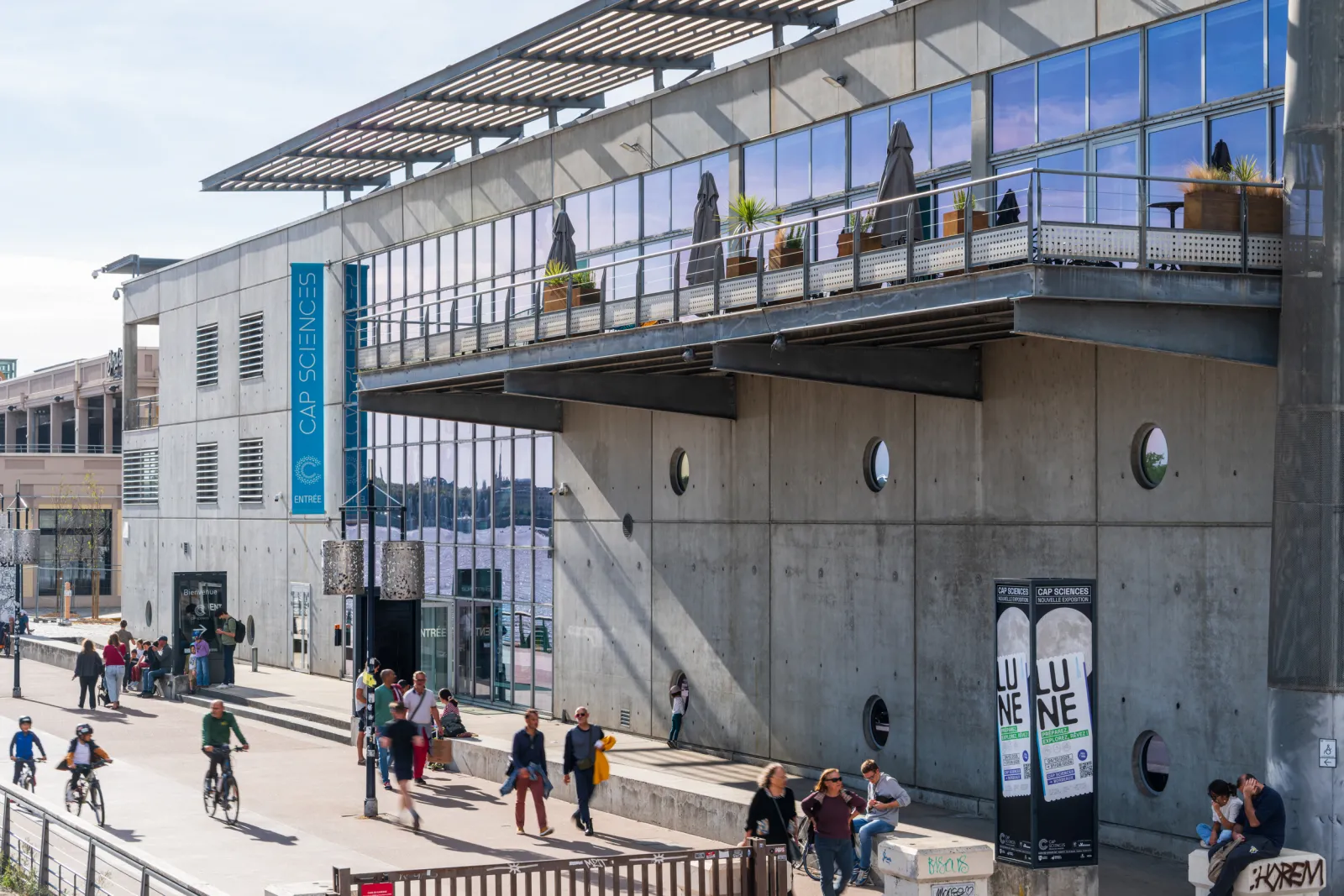 At the Café des Sciences, you can also relax and admire one of the most beautiful views of the Port de la Lune from the spectacular suspended terrace.