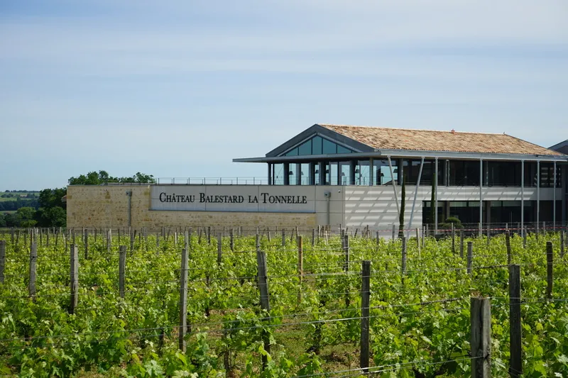 Stretching over 10.5 hectares of vines, the vineyard was founded in the 15th century. Committed to respect for the environment and traditions, Château Balestard La Tonnelle has adopted the sustainable cultivation method. Château Balestard la Tonnelle continues its ascent among the appellation's leading names thanks to its new bioclimatic cellar and its wine tourism area overlooking the city and its vines.