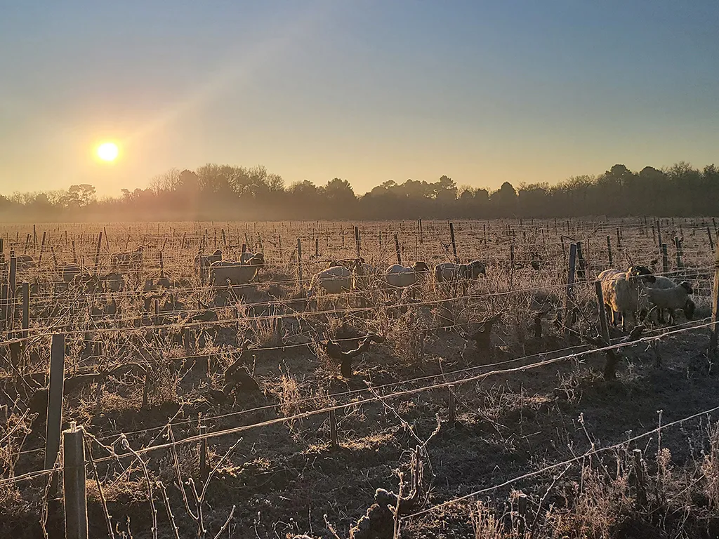 Taking care of our vines with plant infusions, naturally grassed plots, energy independence thanks to our photovoltaic panels, natural shearing and fertilisation with our Landes sheep, nest boxes for blue tits and bats, lightweight glass bottles for a reduced carbon footprint, blind blending, alcoholic fermentation directly in barrels, music therapy, electric wave sensors on the vines ... and new experiments every year. Why do we do this?