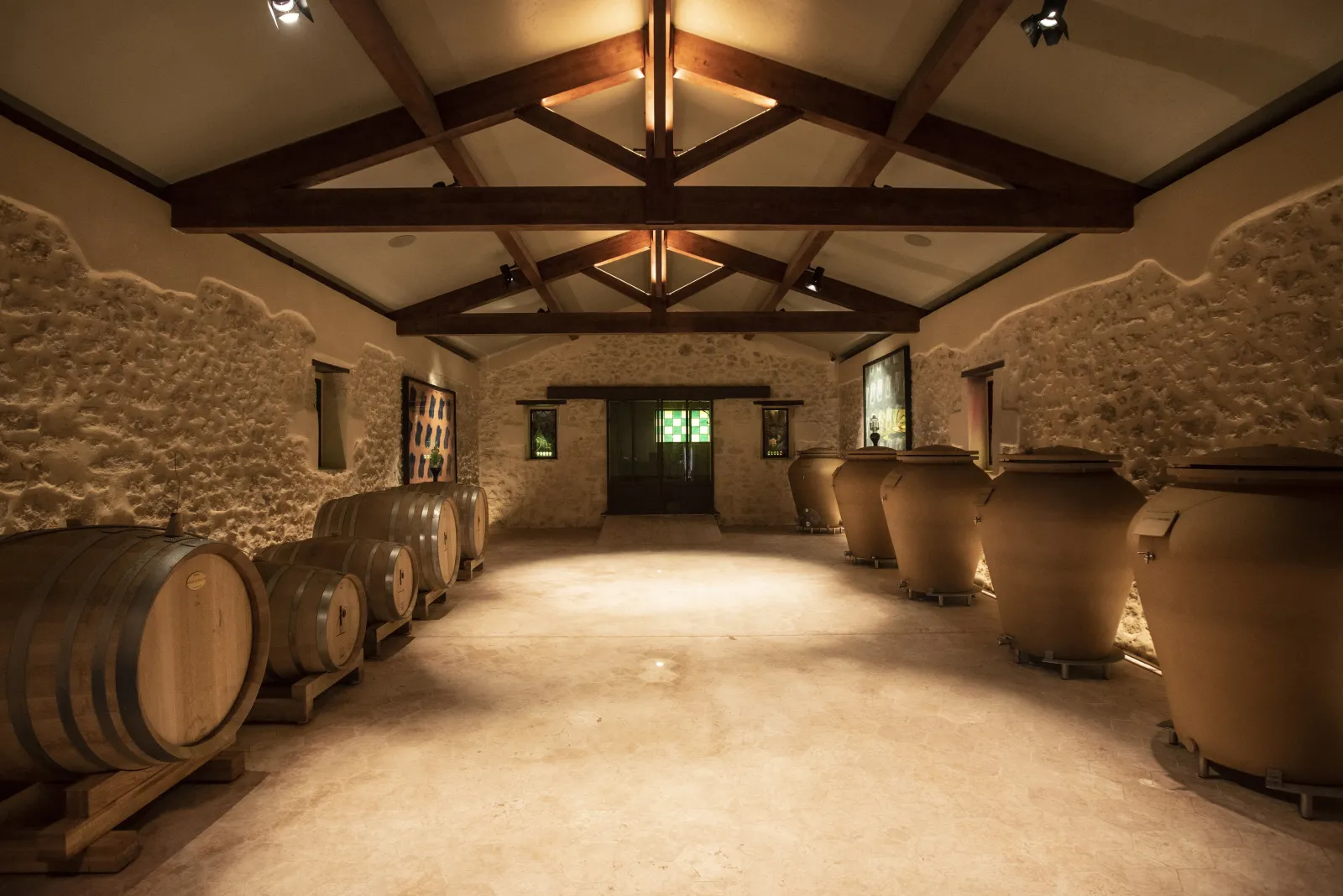 Amid peaceful, unspoiled landscapes, the Domaine des Perchés offers a rare discovery where nature, art, and winemaking come together. The vineyard, cultivated biodynamically, surrounds a cellar dedicated to meticulous vinification — tanks, amphorae, oak barrels — along with a collection of site-specific artworks that give the estate its poetic signature.