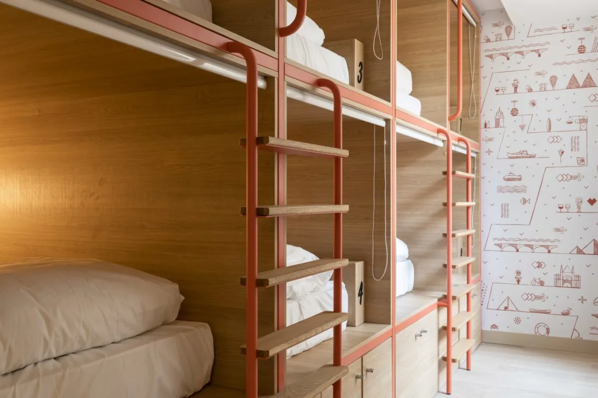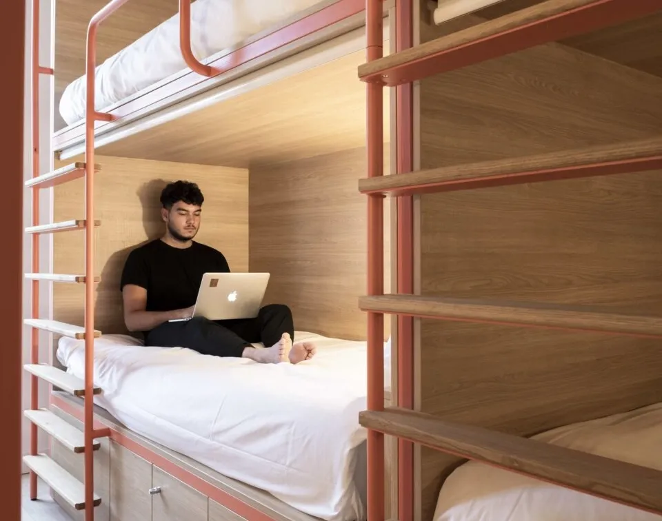 Alone or with friends, our Bordeaux hostel offers beds in dormitories for 6 people, to share or privatize, with shared bathroom and toilets. Our dormitories are super comfortable, functional and designed by a renowned architectural firm to guarantee you an unforgettable experience.